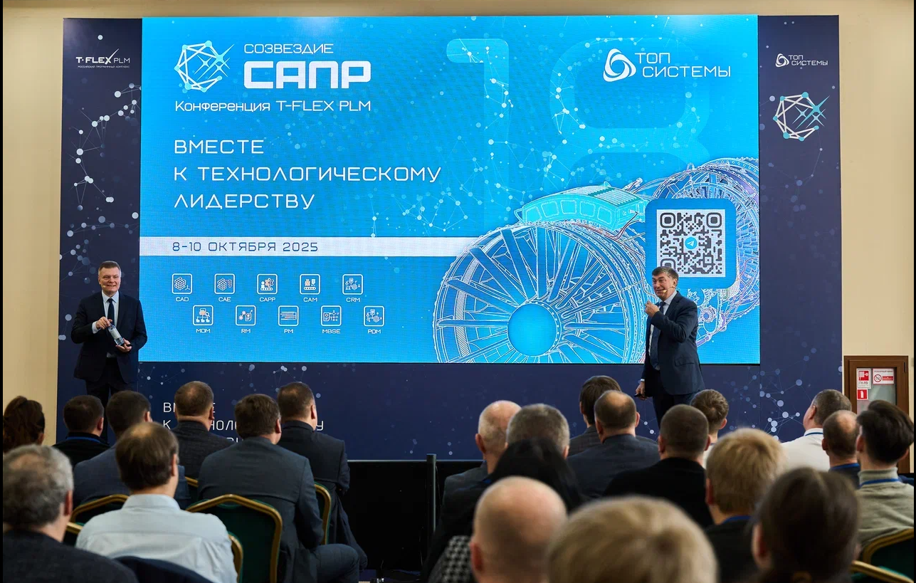 В октябре 2025 года состоялась конференция компании «Топ Системы» – «Созвездие САПР». Это ежегодное закрытое мероприятие для сообщества пользователей решений программного комплекса T-FLEX PLM.